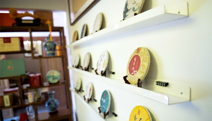 店內琳瑯滿目的宿云古樹茶產品